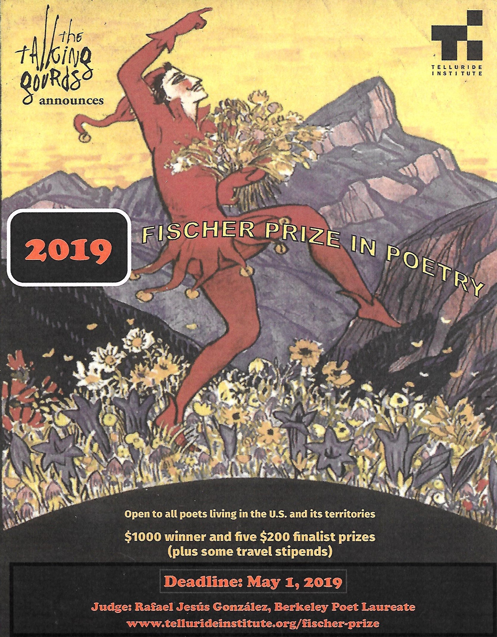 2019 Fischer Prize in Poetry Posted byPi-DesJanuary 14, 2019January 14, 2019Posted inpoetry Share this: Share on Facebook (Opens in new window) Facebook Share on X (Opens in new window) X Like Loading... Related Published by Pi-Des Artist, Founder, Pi-Des. Systems Designer. View more posts