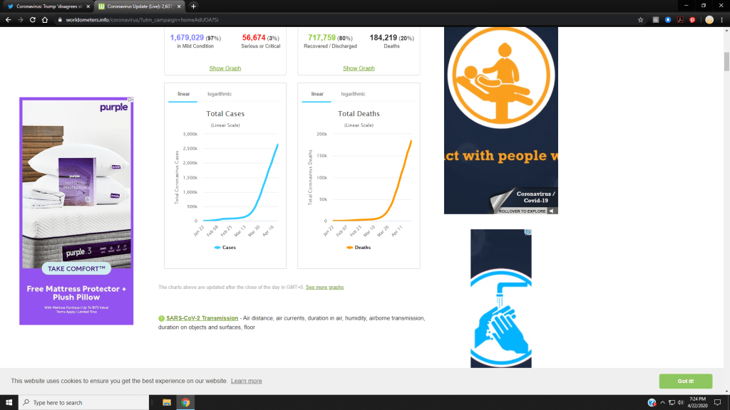 Coronavirus snapshot Posted byPi-DesApril 22, 2020April 26, 2020Posted incensorship, collaborative, corruption, design, disaster, exploratory, music, poetry, public art, racism, Religion, review, travel, zombie related I’m posting this current screen shot in part because the government data has been so unreliable. This is a screen shot of the current situation from a default online result in a Google key word search: “coronavirus death graph” Share this: Share on Facebook (Opens in new window) Facebook Share on X (Opens in new window) X Like Loading... Related Published by Pi-Des Artist, Founder, Pi-Des. Systems Designer. View more posts
