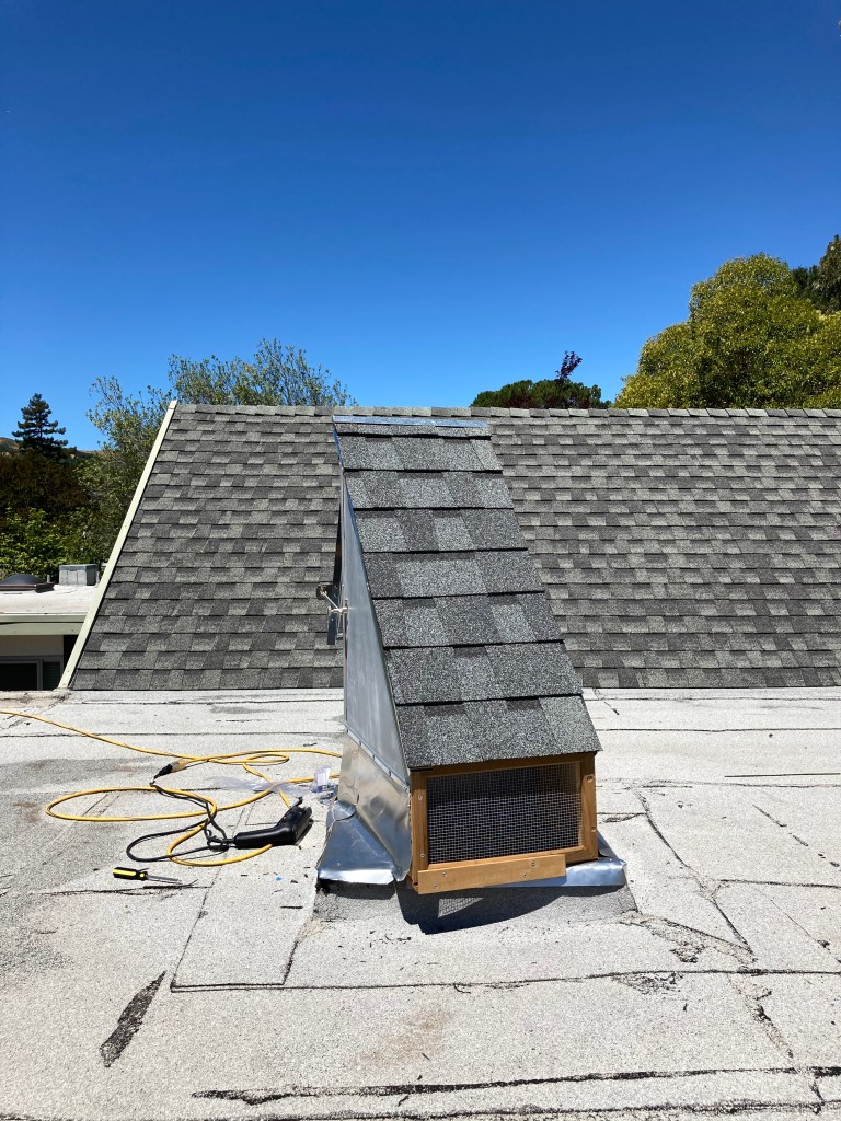 First prototype for a windcatcher that captures the prevailing ocean breeze and naturally vents the interior of a room during warm days. An interior partition divides the cool incoming air flow from the warmer exiting air flow.