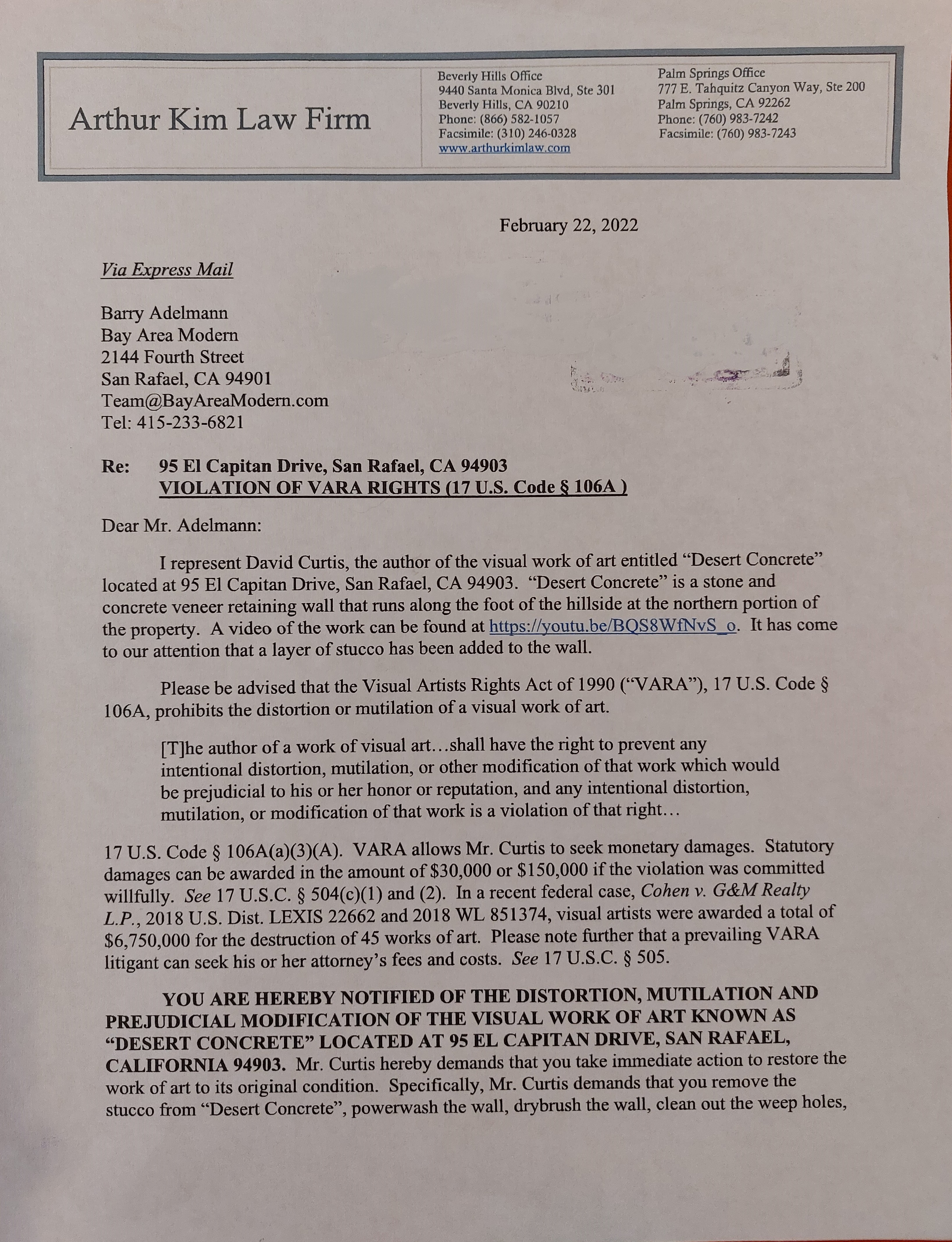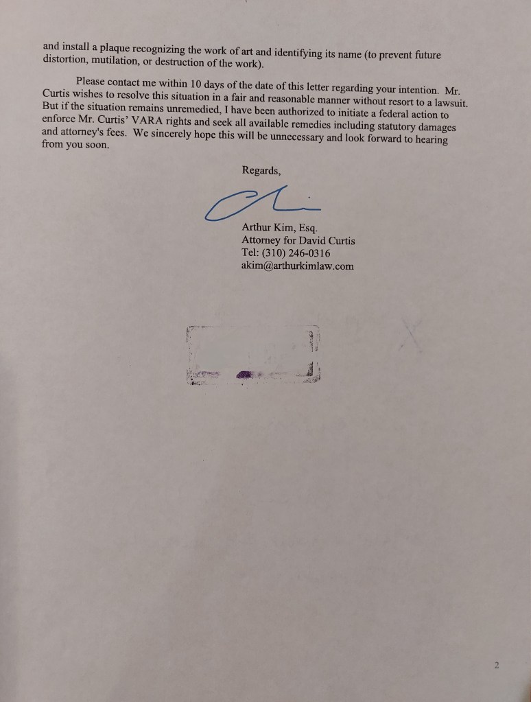 David Curtis invokes VARA protection on Desert Concrete Posted byPi-DesMarch 8, 2022May 18, 2022Posted inart, censorship, racism Share this: Share on Facebook (Opens in new window) Facebook Share on X (Opens in new window) X Like Loading... Related Published by Pi-Des Artist, Founder, Pi-Des. Systems Designer. View more posts
