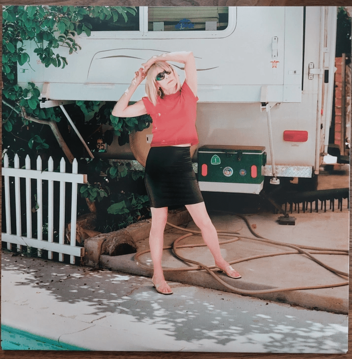 it allows Kim Gordon to stand directly in front of us.