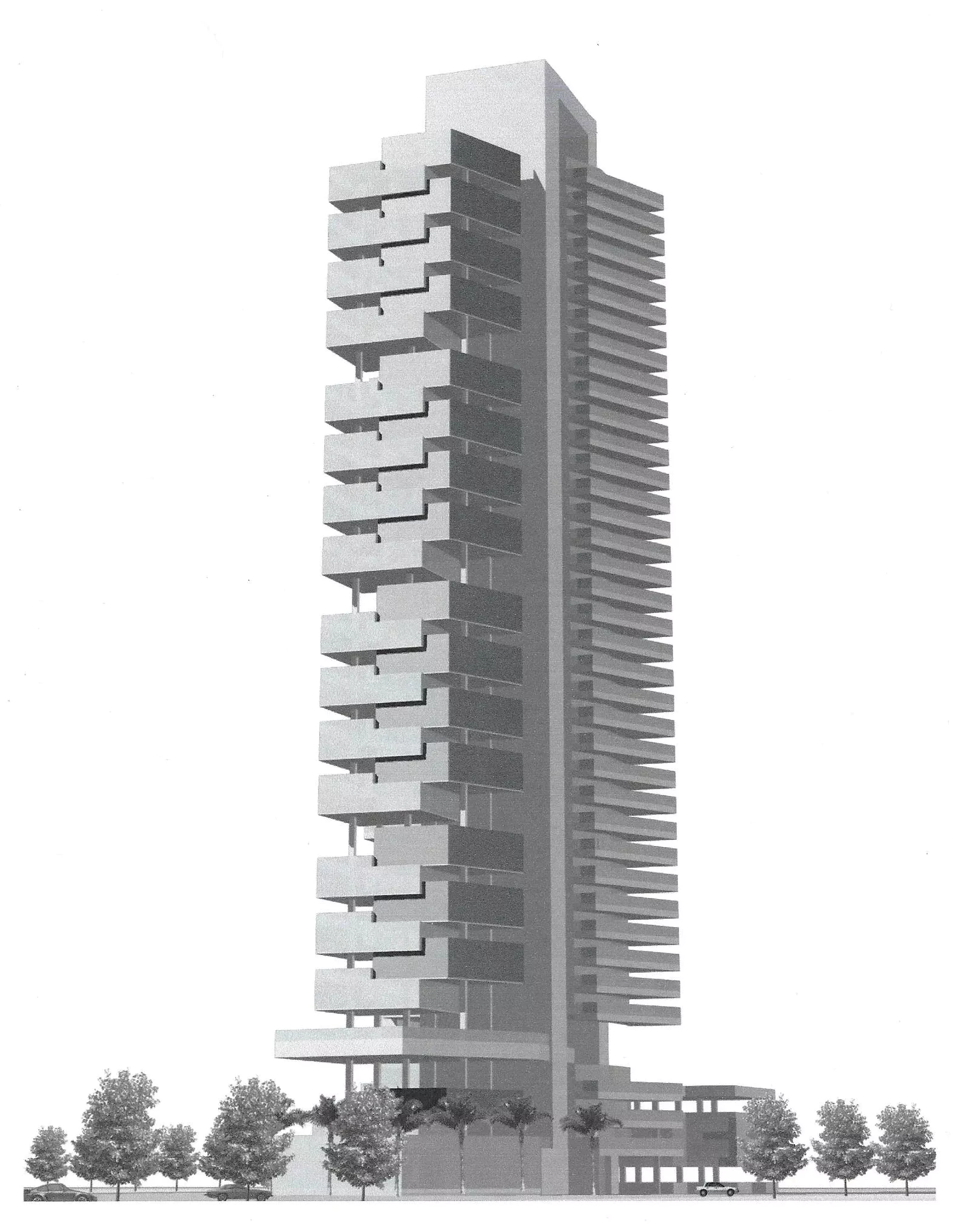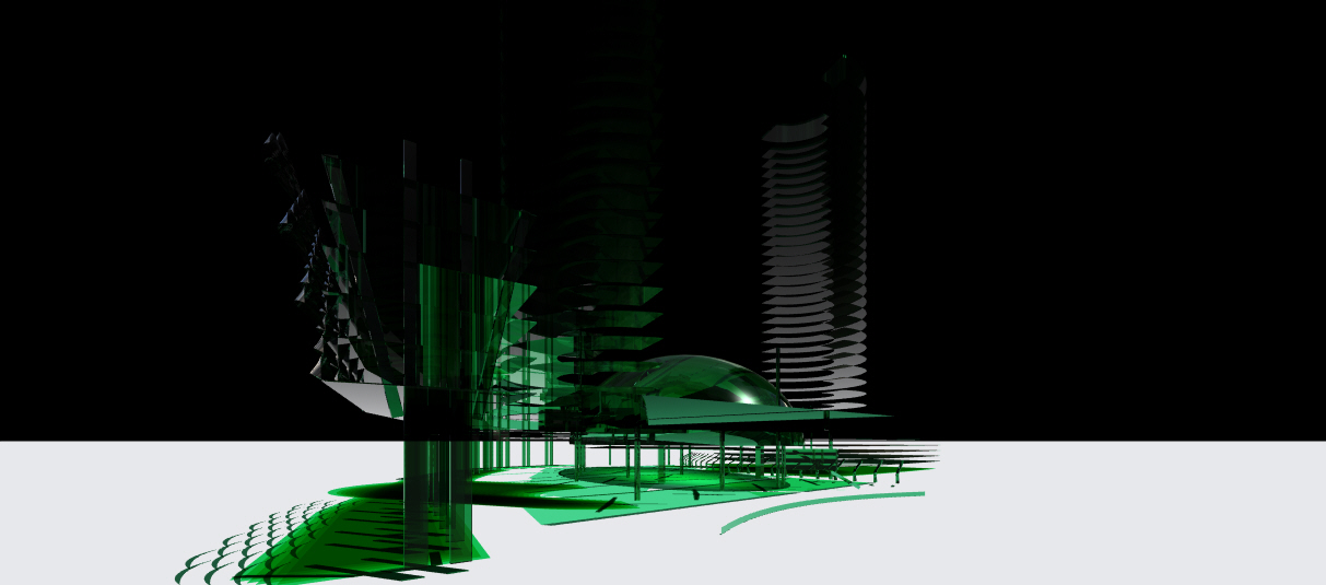 The internal partition truss (140′ long, fully clad, both sides in 1/2″ corten) was fully suspended from the underside of the hotel tower. It has been reconfigured, if not completely removed.